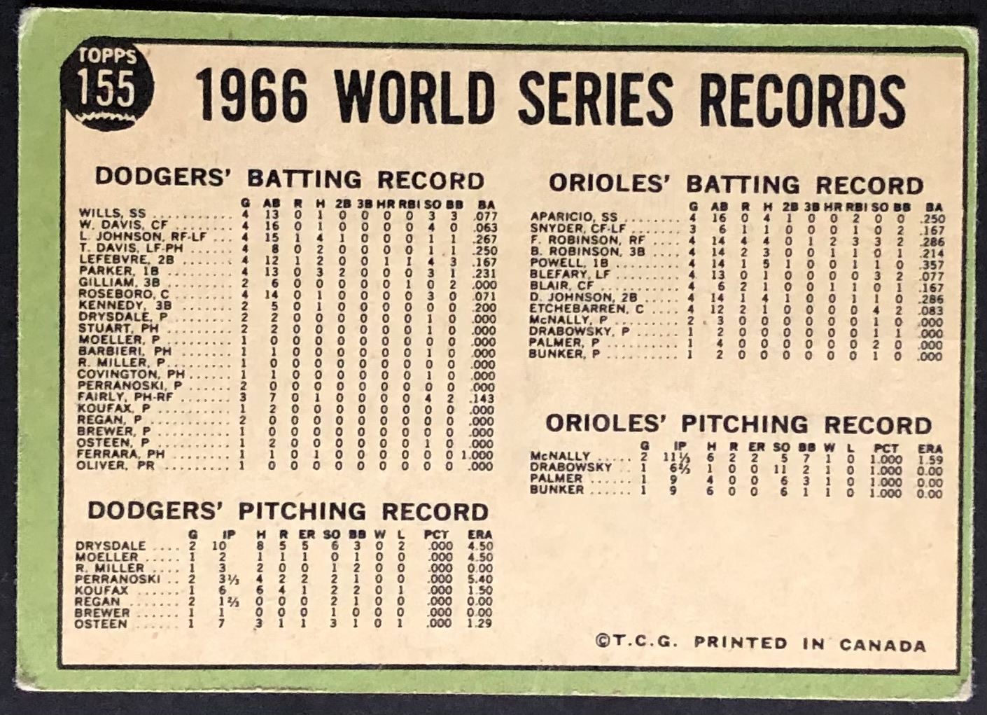 Card #155 baseball, MLB, vintage