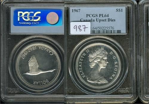 1967 UPSET DIES PCGS PL64PQ. Brilliant with full lustre. An extremely rare error coin seeking by most of the serious and advanced collectors. Only a few pieces are known! Worth a premium bid!