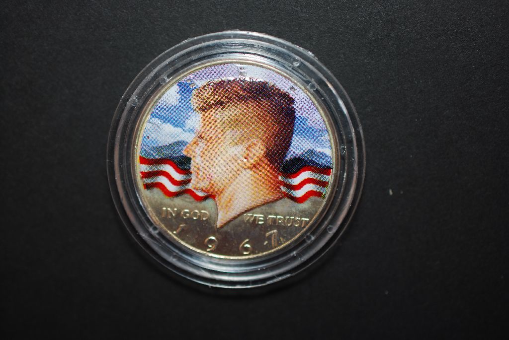 1967 US Kennedy Half Dollar Colorized On Obv. In Display Box; EST. $15-20