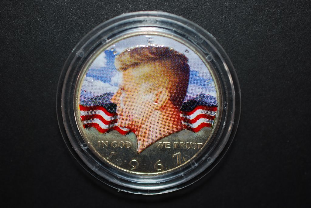 1967 US Kennedy Half Dollar Gold Toned & Colorized On Front In Display Box; EST. $15-20