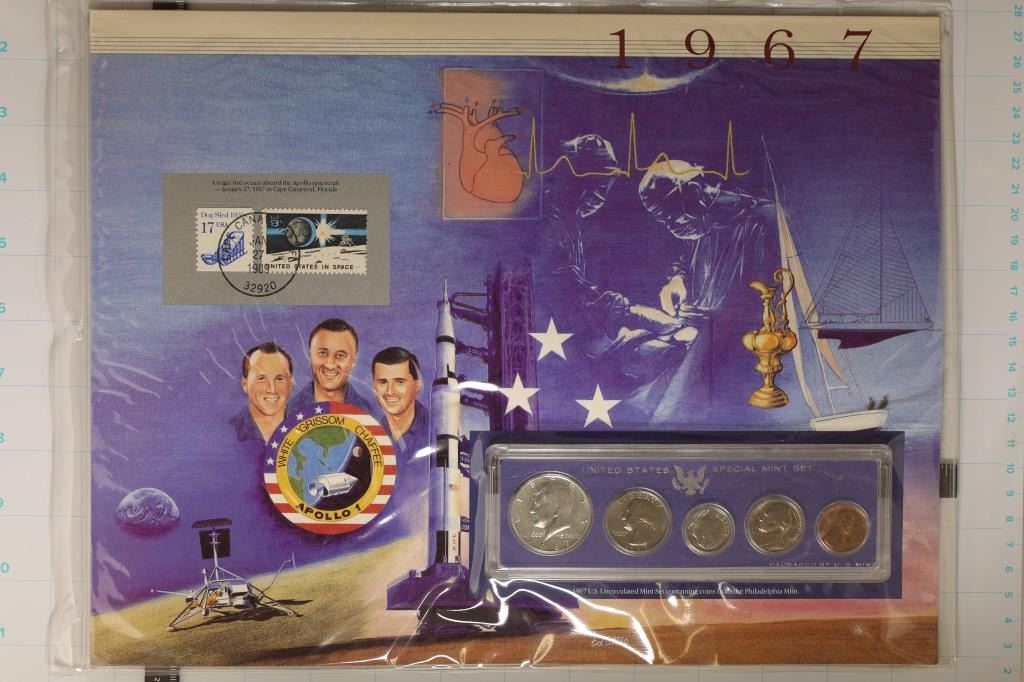 40% SILVER JOHN F. KENNEDY HALF DOLLAR, WITH CANCELLED STAMPS IN PLASTIC SLEEVE