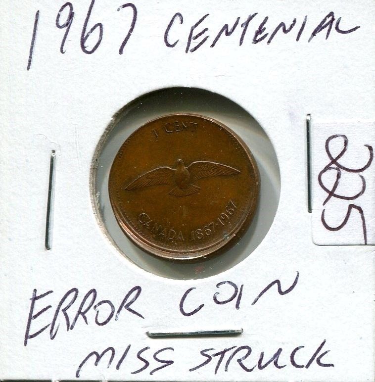 1967 centennial Error penny,1967 Miss Struck coin error,Queen Elizabeth II