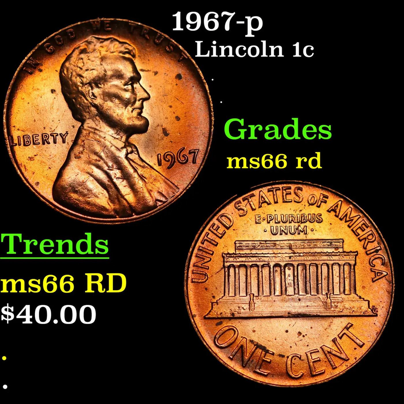 1967-p Lincoln Cent 1c Grades GEM+ Unc RD.