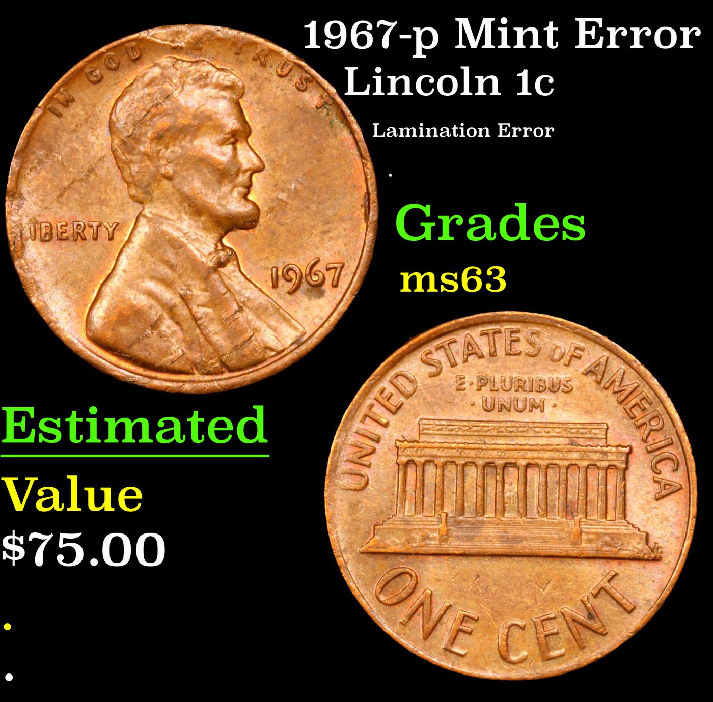 1967-p Mint Error Lincoln Cent 1c Grades Select Unc.