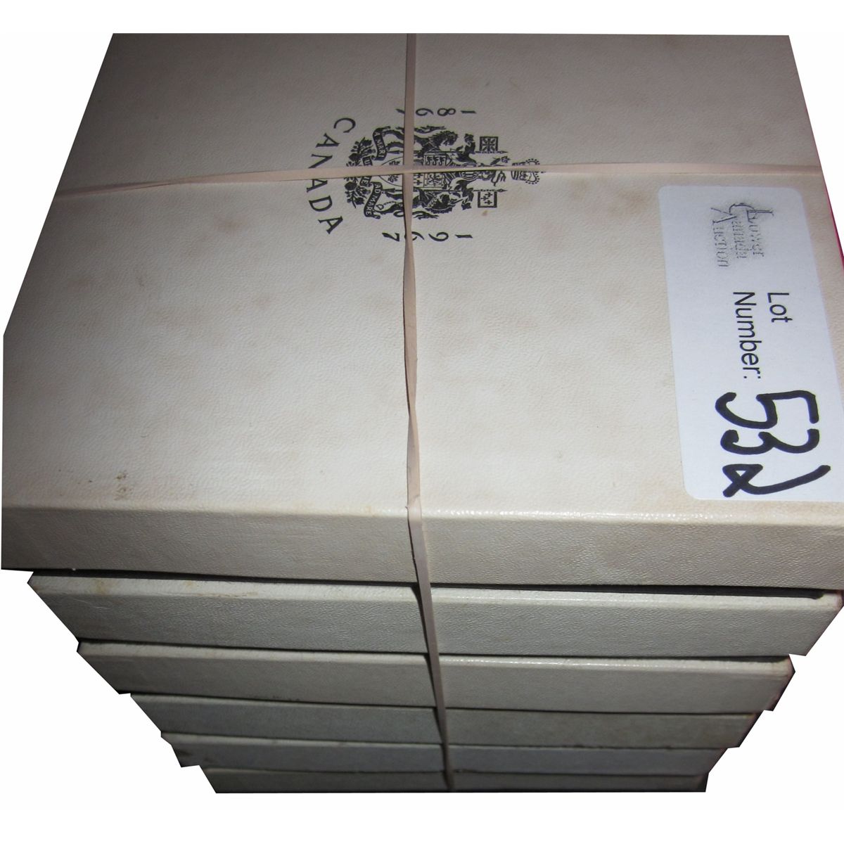 1967 set in black leather presentation case without the $20 gold, 1 cent to 1 dollar in Specimen condition. Lot of 6 sets.