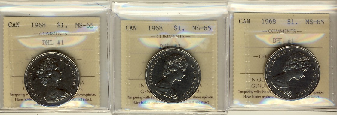 1968 $1 DHL#1 ICCS MS65. Lot of 3 coins.
