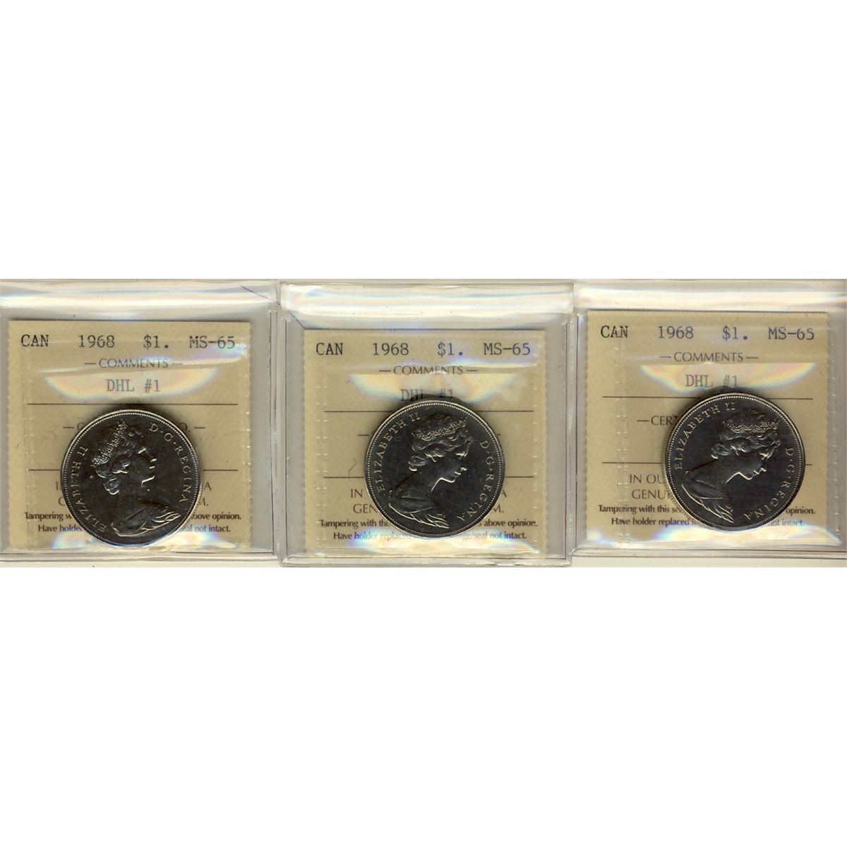 1968 $1 DHL#1 ICCS MS65. Lot of 3 coins.