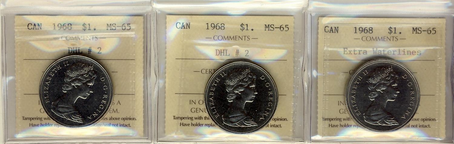1968 $1 EWL & DHL #2(2) MS65.  Lot of 3 coins all ICCS graded.
