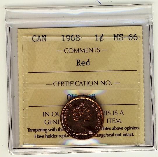 1968 1¢ ICCS MS66 Full Red, A superb GEM example.