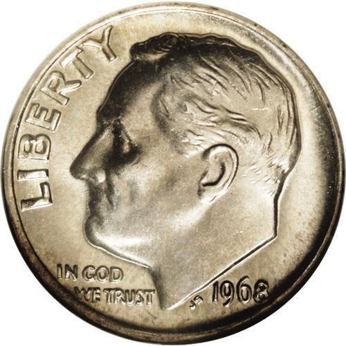 <B>1968<10C> No S PR65 NGC.</B></I> The year 1968 marked the beginning of proof coinage production at the San Francisco Mint, which remained dormant for most of the decade since coinage ceased in 1955. With the advent of S-Mint proof coinage, it was only a matter of time before examples were produced without a mintmark, and not much time elapsed. The first of several S-less proof coinage varieties occurred in the very same year. This example is a pleasing Gem with pale champagne toning on both sides.