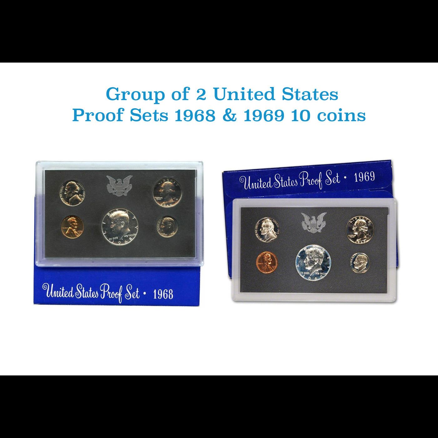 1968 & 1969 United Stated Mint Proof Set In Original Government Packaging. Both the 1968 & 1969 Proof Sets Includes 5 Proof Coins Including the 40% Silver Kennedy Half Dollar.
