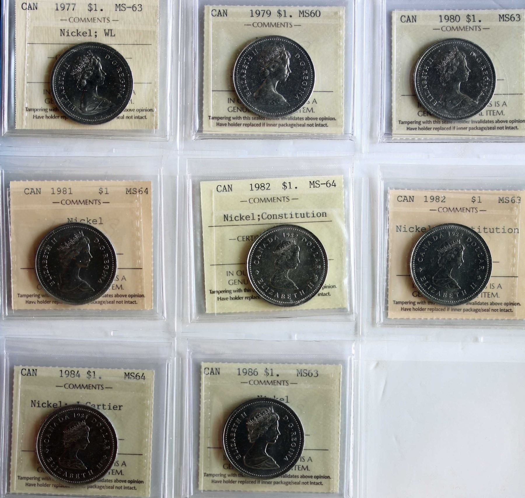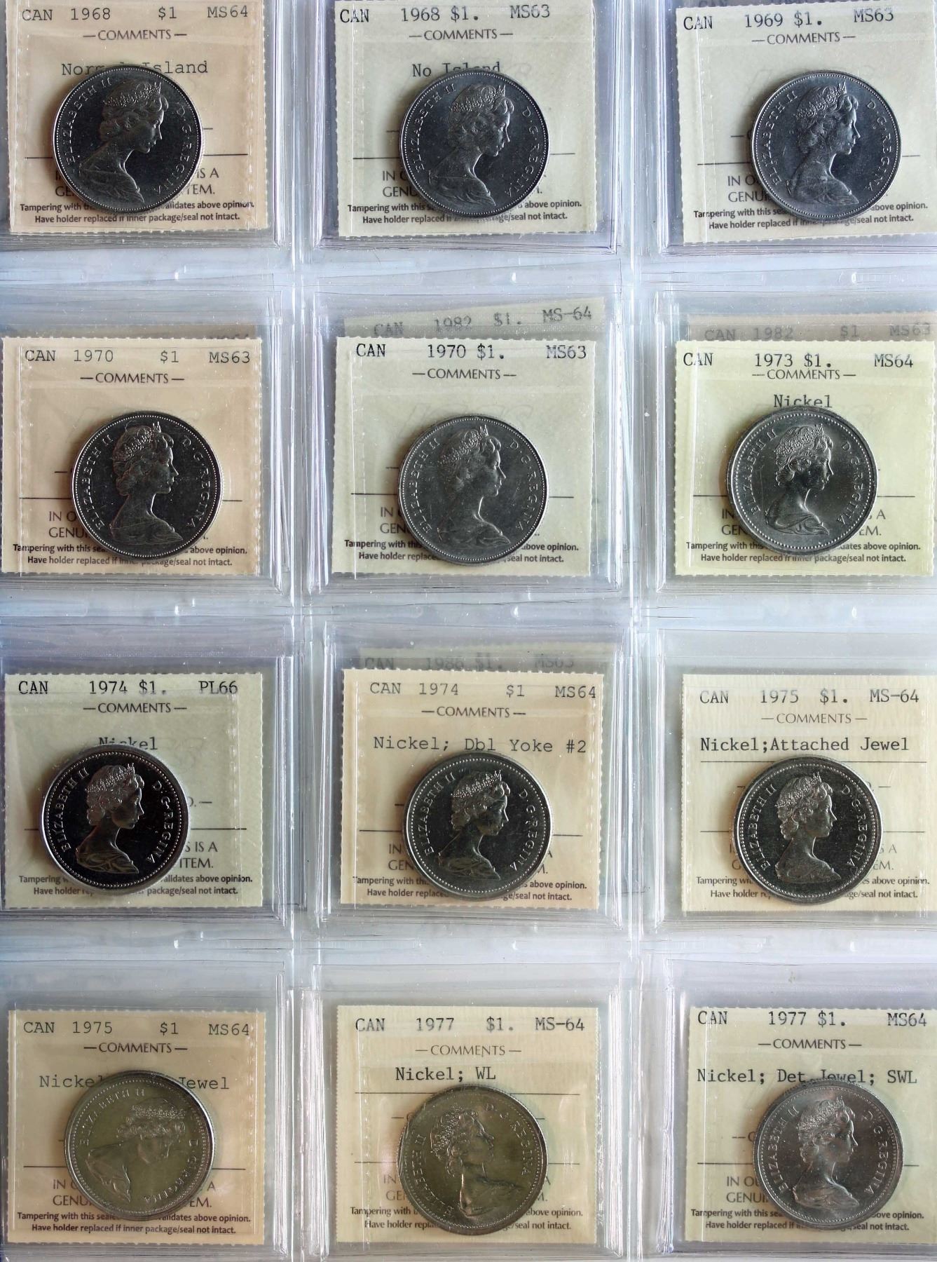 1968-1986 $1 "NICKEL" All 20 coins ICCS Choice Mint State-63 to Superb Gem Proof-Like-66. includes some better and interesting varieties. 1968 "No Island", 1974 "Dbl Yoke" and more.