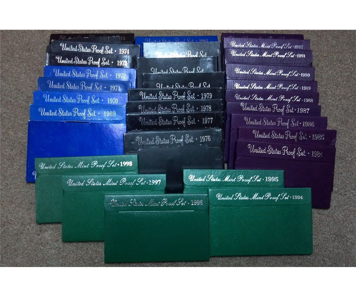 1968-1998 (Missing 1975) 30 PC OF Mint Proof Sets Original Box Clad