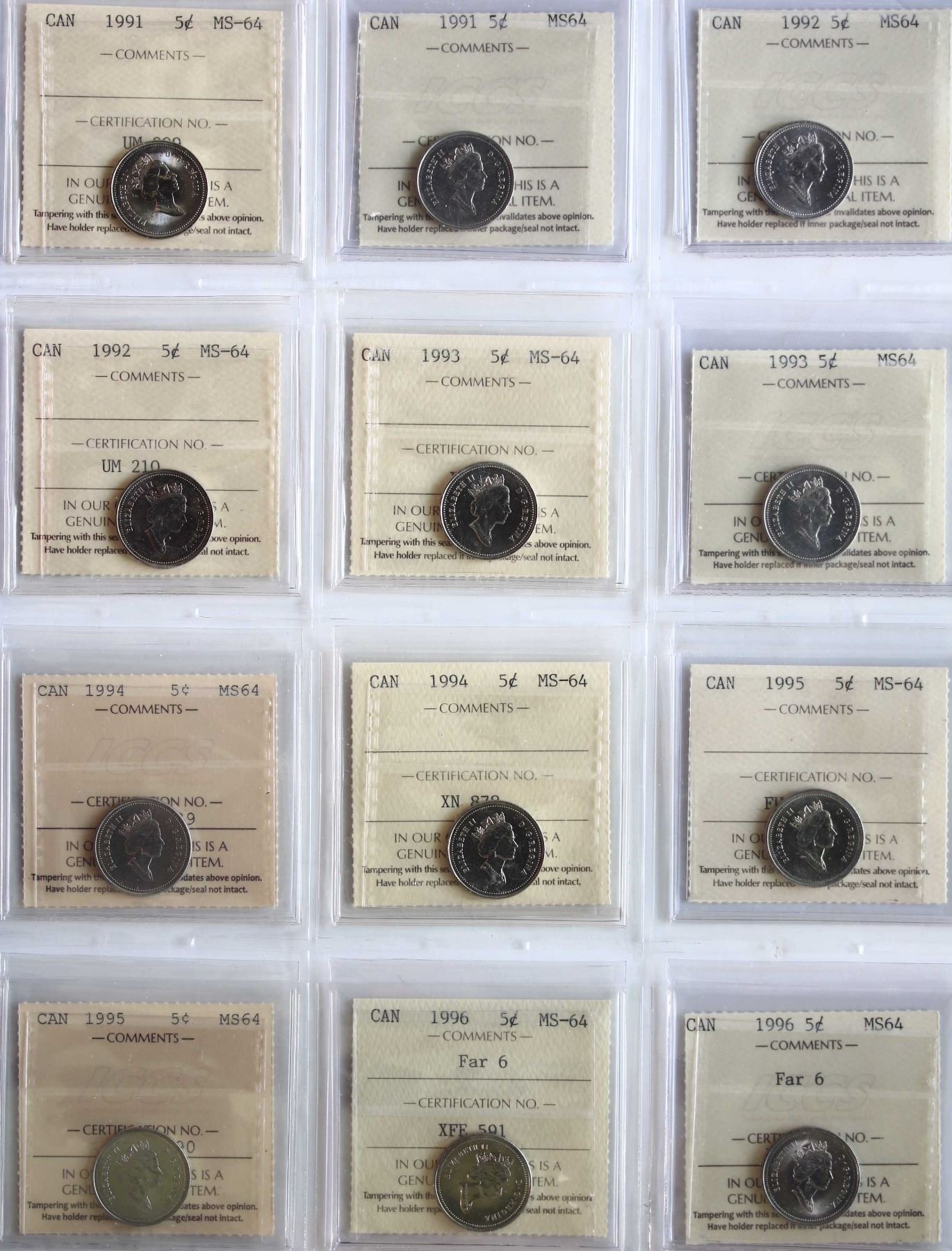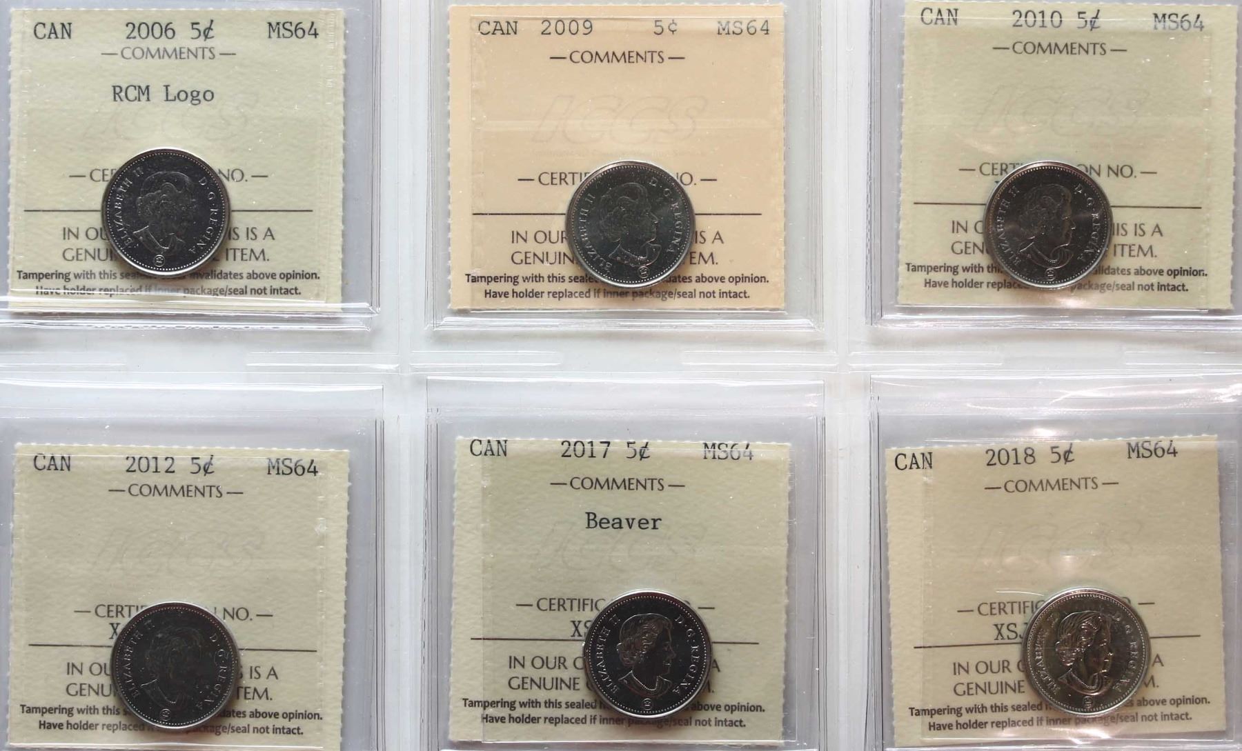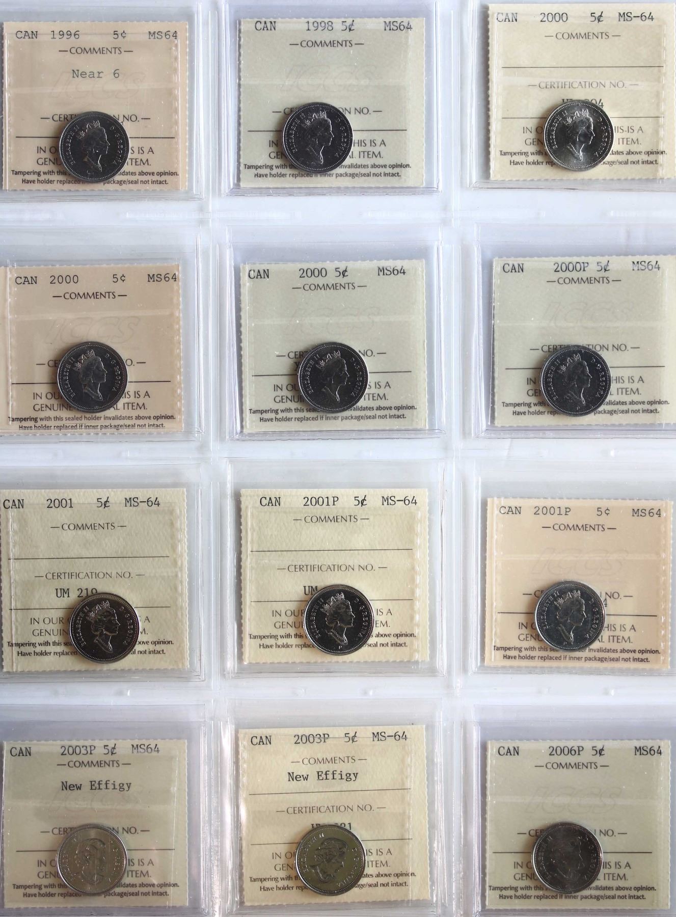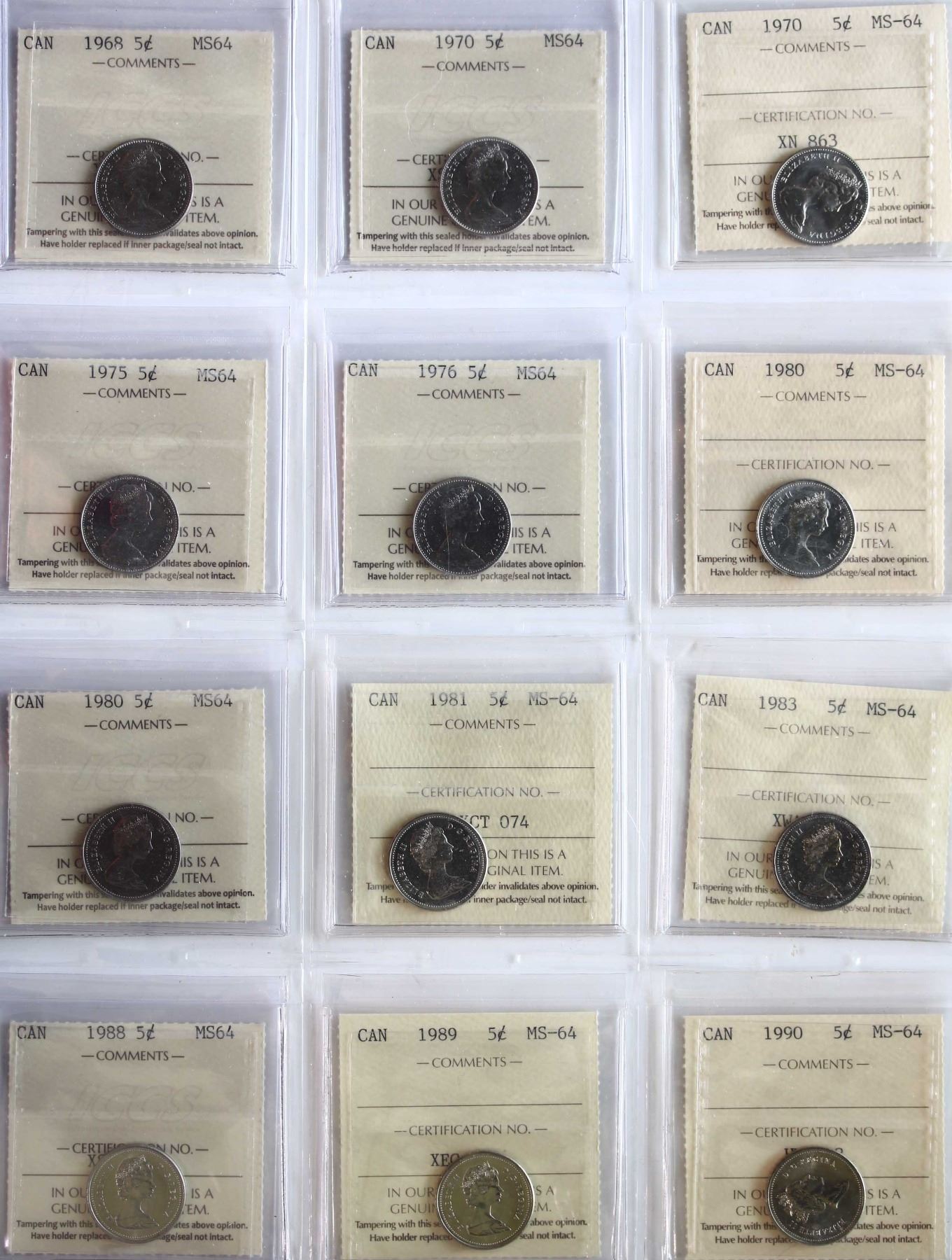 1968-2018 5¢ All 42 coins ICCS Very Choice Mint State-64. Includes some varieties and a few duplicates. A nice set.