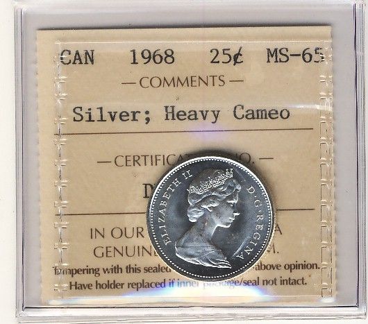 1968 25¢ Silver ICCS MS65 Heavy Cameo.