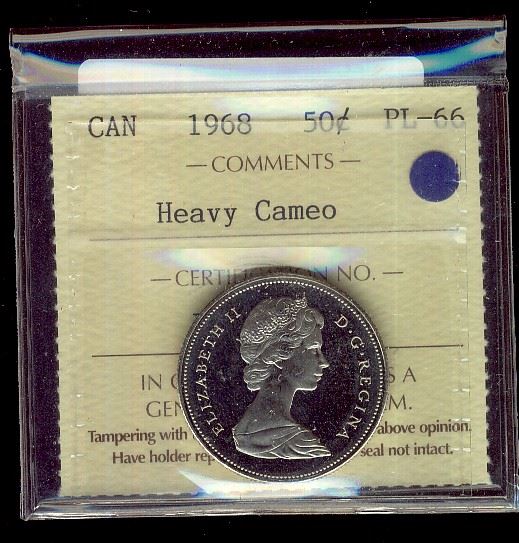 1968 50¢ ICCS PL66 Heavy Cameo.