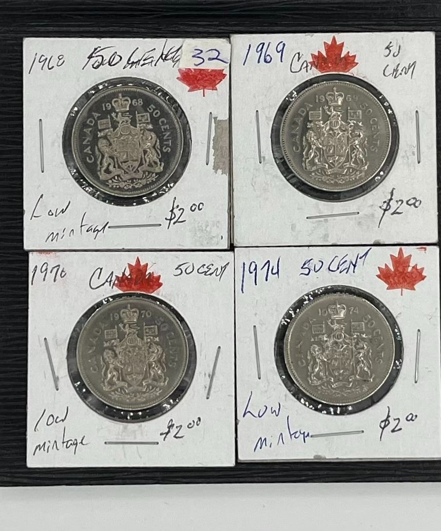 1968 50 cent pieces x 4 nice group brilliant coins take a close look at the details Part of 2020 recall