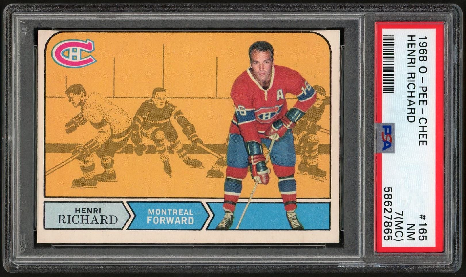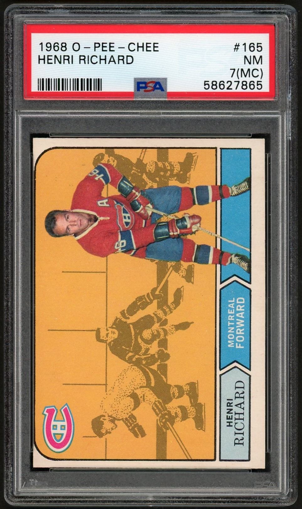 Winner of 11 Stanley Cups, yes, 11 of them, Habs all-time great and HOFer, graded 7 NM (mis-cut) by PSA.