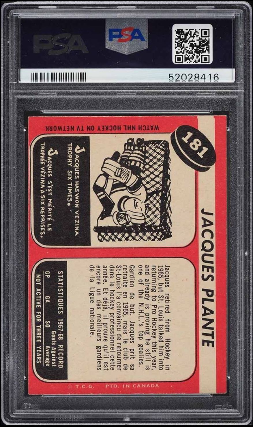 Gorgeous 68 OPC Plante, well centered, sharp and clean! Graded 7 NMT by PSA!