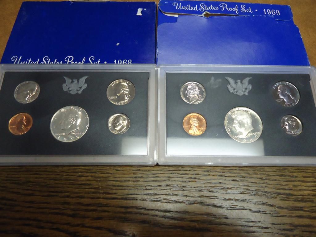 1968 & 69 US PROOF SETS (WITH BOXES) 40% HALVES