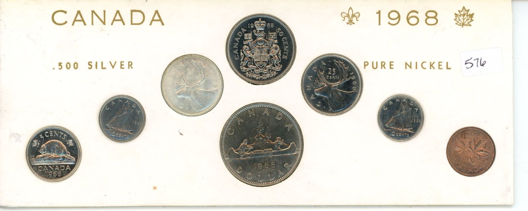 1968 8-coin Canada Year Set. Includes both Silver & Nickel coins.