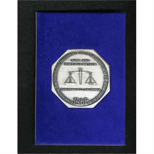 <B>1968 .999 Fine Silver Slug.</B></I> Silver, 40 mm x 40 mm, 29.8 gm. Slug, serial number 974 of 10,000 that were produced from the silver that was redeemed using paper silver certificates at the U.S. Mint Assay Office in San Francisco. The slug was designed by V. M. Hanks, Jr., numismatist. We do not know how many of these are around today, but this is the first one we have seen. Comes with an interesting writeup and certificate.<BR><BR><b>Shipping:</b> Coins & Currency (<a target="_blank" href="http://www.heritageauctions.com/common/shipping.php">view shipping information</a>)