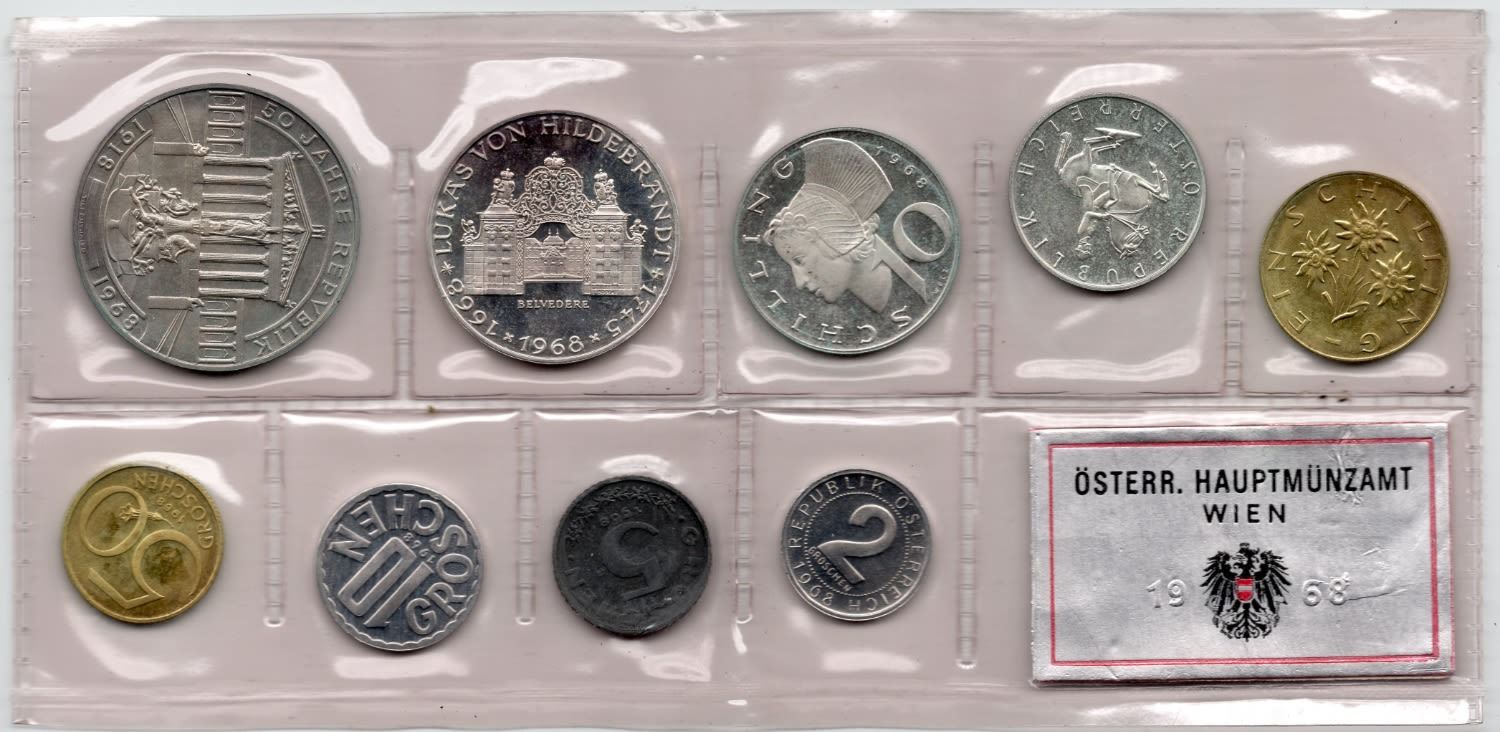 1968 Austrian Vienna Mint Set. This set has Silver Coinage in it. This is a pristine set!