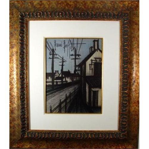 Authentic and Original! Titled: The Village Road Printed; Paris, MOURLOT, 1968 Full Image Size 12.25 x 9.5 Image extends to boarder, signed in the plate by the artist. Near mint condition, verso is clean. FRAME SIZE: 25.25 x 22.25 Very nice frame; Custom hand assemble wood frame, using a 4 molding, linen matting beveled to a wood filet, all acid free material, uv glass. <p> Bernard Buffet 1928 - 1999 France French painter, illustrator and printmaker. After studying at the Ecole des Jйsuites, he entered the Lycйe Carnot in Paris in 1939. His antipathy to academic study led to his expulsion in 1943, in which year he attended an evening class in drawing. In December 1943 he gained a place at the Ecole Nationale Supйrieure des Beaux-Arts in Paris, working in the studio of Eugиne Narbonne (b 1885). On leaving the Ecole des Beaux-Arts in 1945 he travelled to Brittany with his mother, but after her sudden death he returned to Paris, where he devoted himself to painting. He then moved to Massy-Palaiseau, just south of Paris, to work with his friend Robert Mantienne, a French painter, and painted the Deposition from the Cross (c. 1945; Paris, Pompidou). This early work, with its restrained grey-toned colours and gaunt, anxious human figures, already bears many of the hallmarks of his later painting; both in spirit and colouring it shows the influence of Francis Gruber. In 1946 he met the writer Pierre Descargues, who became one of his earliest and most ...