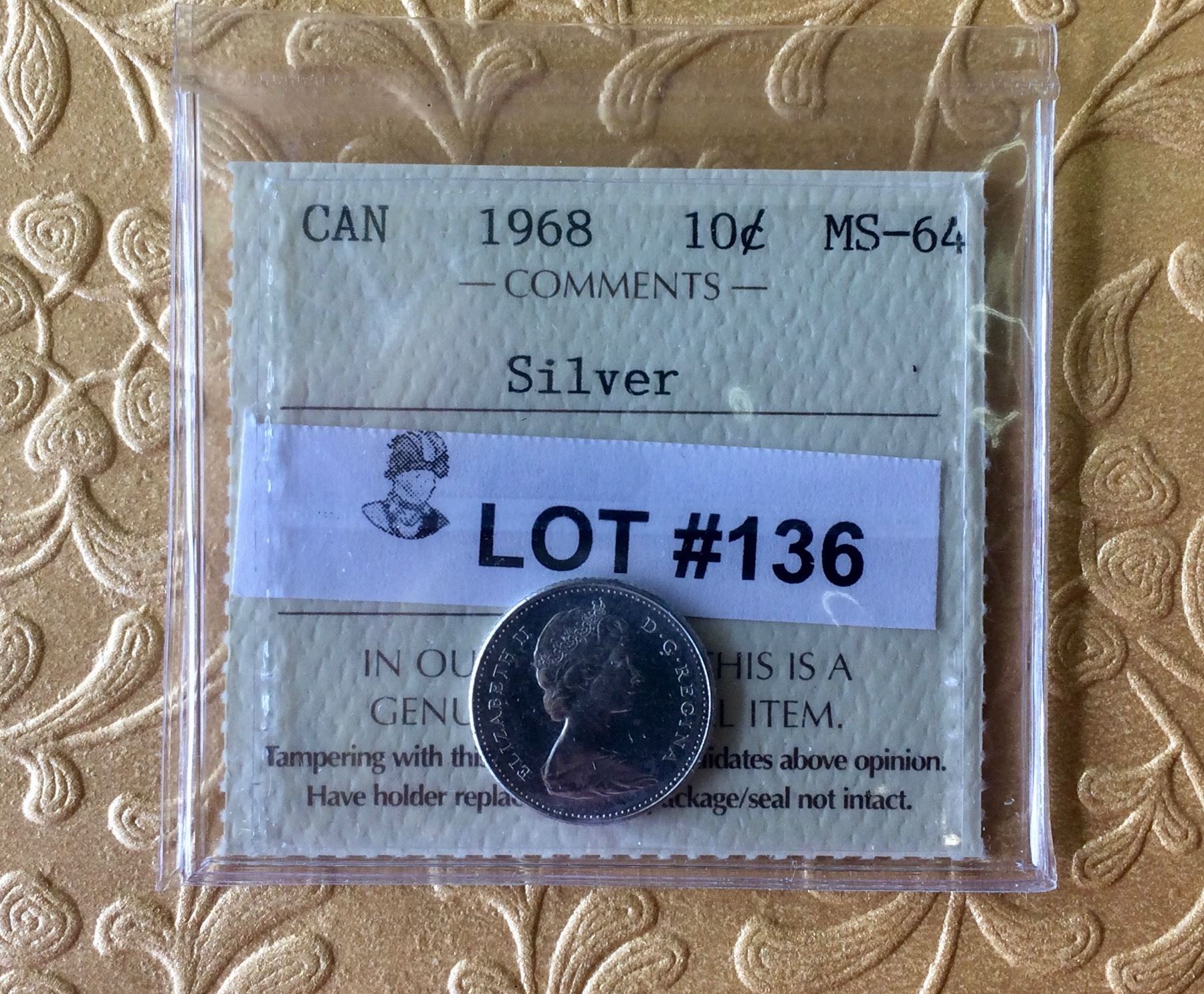 1968 CANADA 10 CENTS MS-64 ICCS SILVER