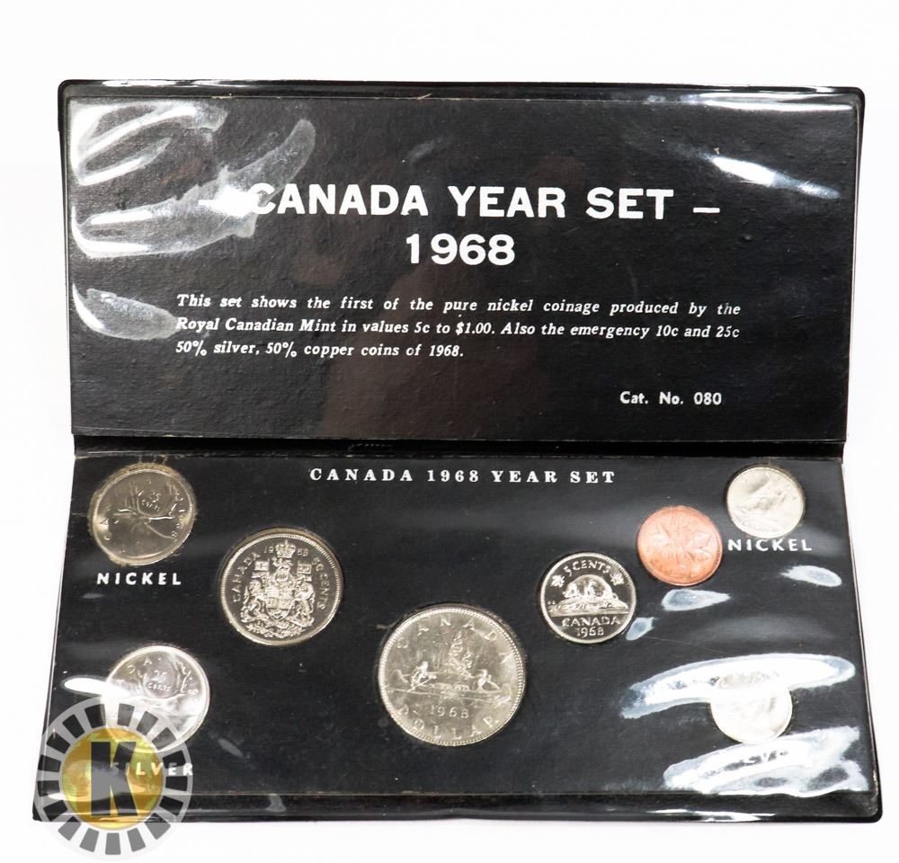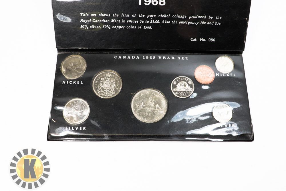 TWO 80% SILVER COINS. MS 63. Rare 1968 coin set, last of the actual silver coins, which are included in the set.***ITEM(S) LOCATED IN LETHBRIDGE ALBERTA