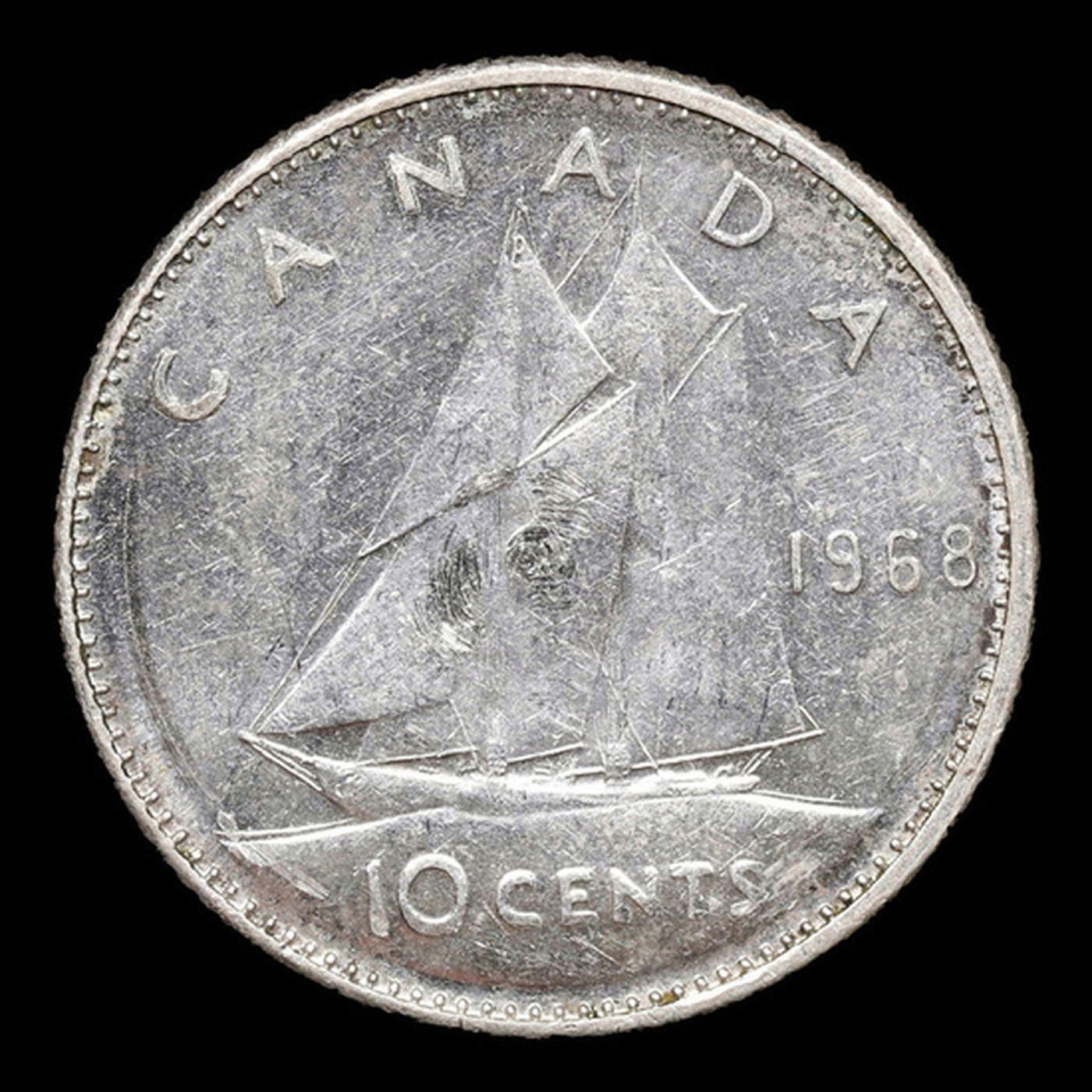 1968 Canada 10c Dime Queen Elizabeth II Grades Unc Details.