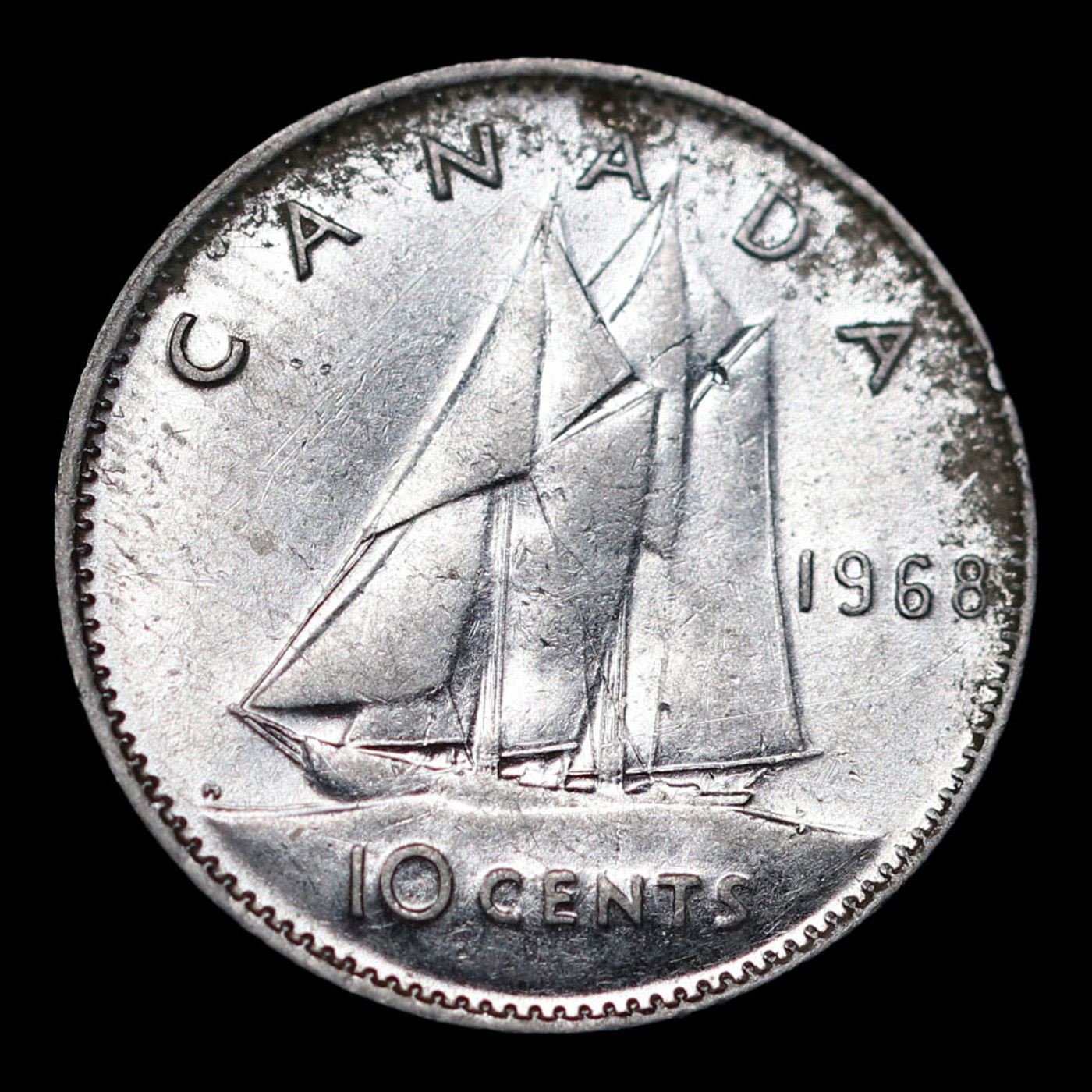 1968 Canada Dime 10c KM-72 Grades Choice AU/BU Slider.