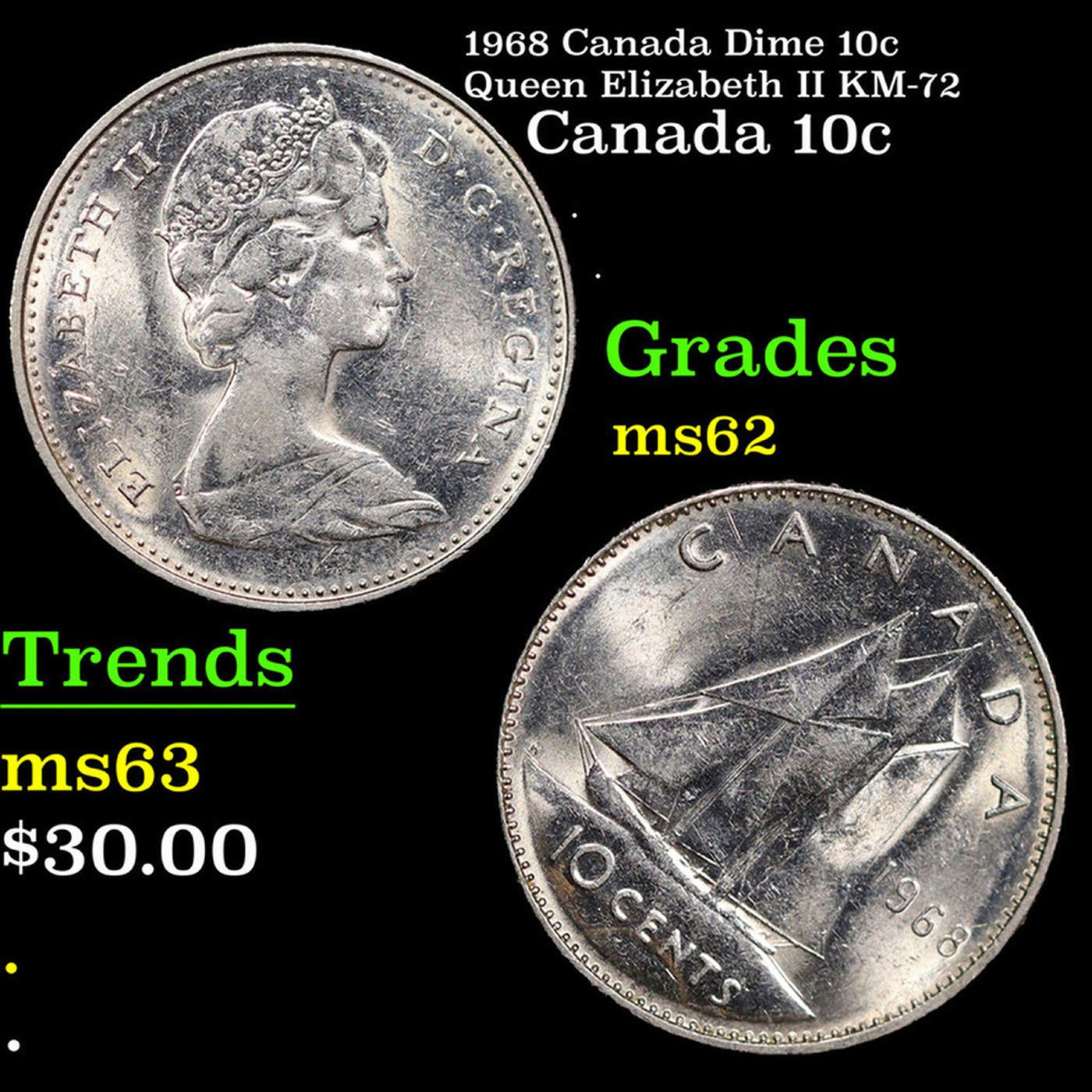 1968 Canada Dime 10c Queen Elizabeth II KM-72 Grades Select Unc.
