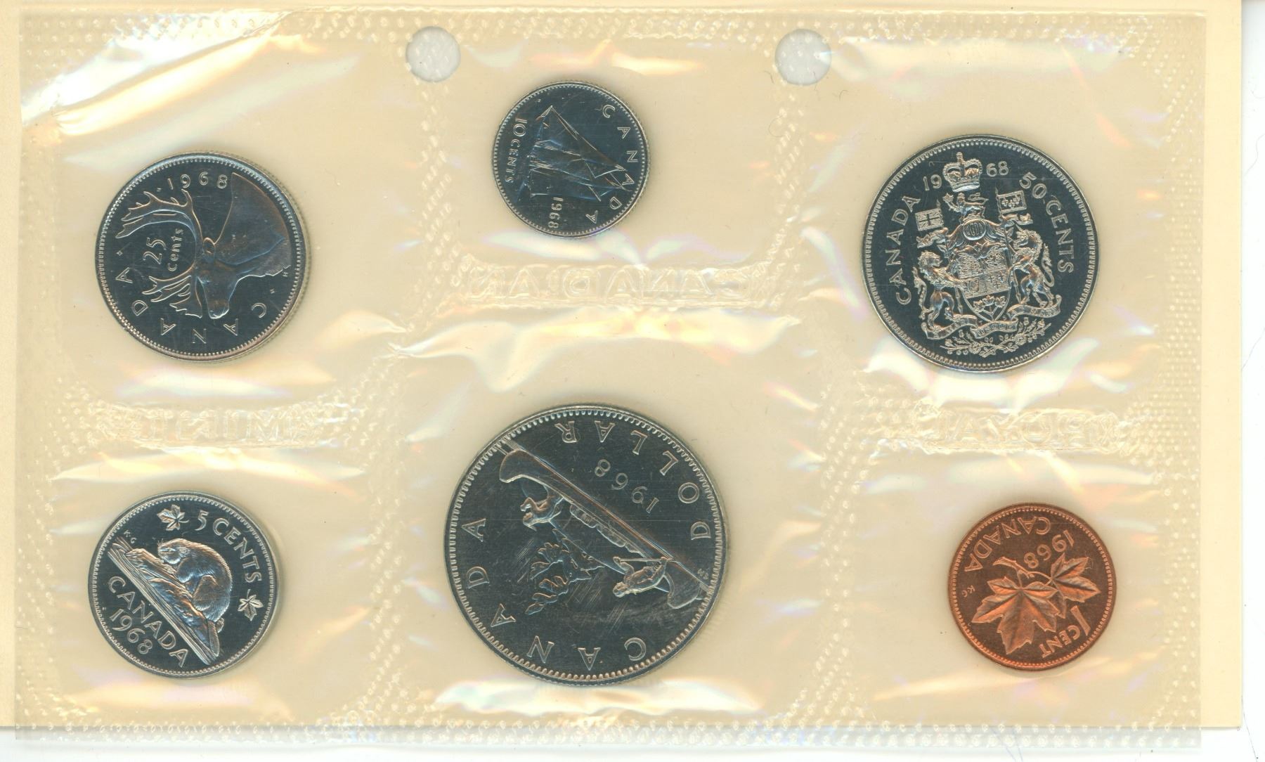 1968 Canadian Proof Like Set. 6-coin set. One coin has a Cameo.