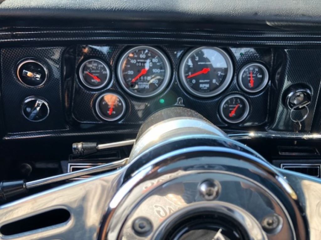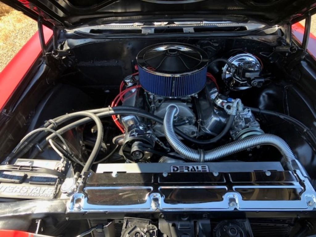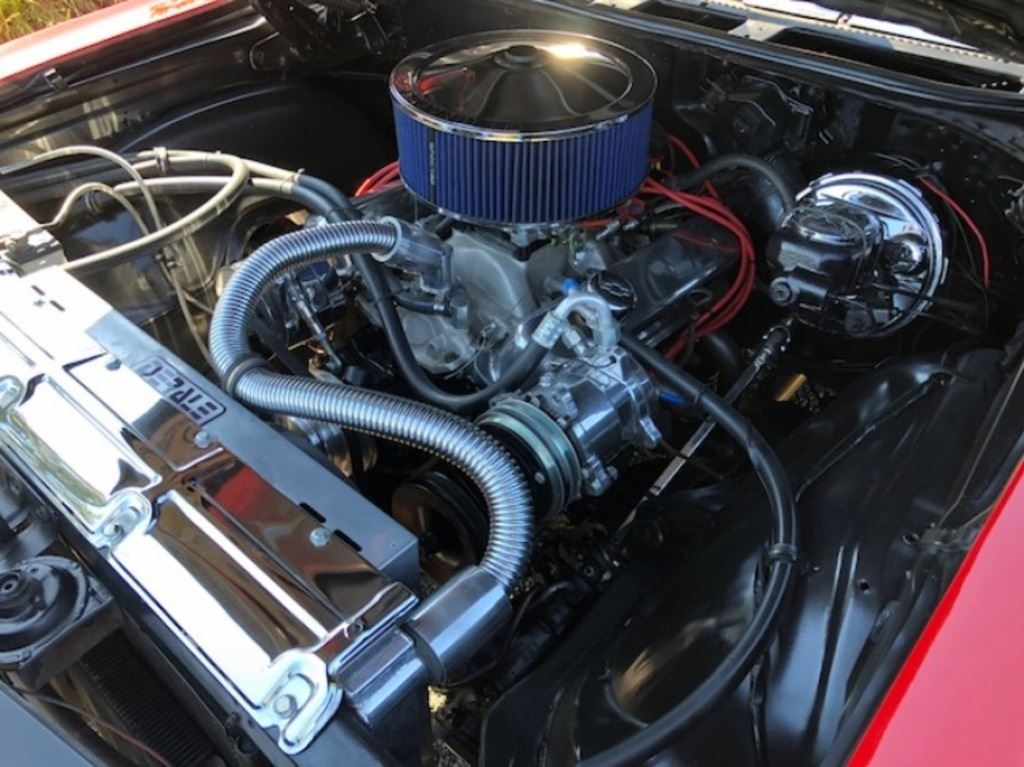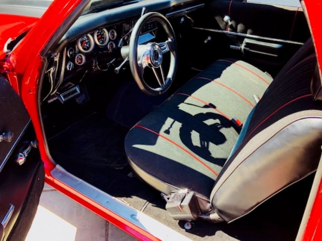 1968 Custom El Camino. 350 cid engine, Edelbrock intake, Edelbrock carb. Custom headers with replaced exhaust system. 700 R overdrive transmission with a shift kit. Power CPP disc brakes cross drilled up front. Power steering. Vintage air condition and heat. Carbon fiber dash with Autometer gauges with tach. Custom interior. Aluminum radiator with cooling fans. Cragar wheels with high speed radials tires. Snap on bed cover. Viper Red paint