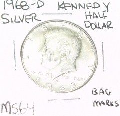 1968-D KENNEDY SILVER HALF DOLLAR *EXTREMELY RARE MS-64 HIGH GRADE* Bag Marks!! ***Coin, Currency & All Items Listed in this auction - Grades, Conditions and Values are not Safe Deposit Coins LLC Responsibilty. Grades, Condition and Values are determined by Consigner(s) & Buyers.