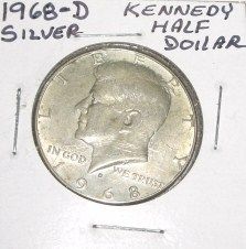 1968-D KENNEDY SILVER HALF DOLLAR *NICE COIN - PLEASE LOOK AT PIC. TO DETERMINE GRADE*!! ***Coin, Currency & All Items Listed in this auction - Grades, Conditions and Values are not Safe Deposit Coins LLC Responsibilty. Grades, Condition and Values are determined by Consigner(s) & Buyers ONLY