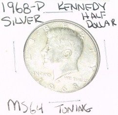 1968-D KENNEDY SILVER HALF DOLLAR *RARE MS-64 HIGH GRADE Toning*!! ***Coin & Currency Grades, Conditions and Values are not Northern Colorado Estate Liquidators Responsibilty. Grades, Condition and Values are determined by Consigner(s) & Buyers ONLY***