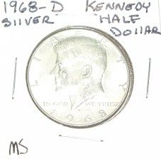 1968-D KENNEDY SILVER HALF DOLLAR *RARE MS HIGH GRADE - NICE SILVER HALF DOLLAR*!! ***Coin, Currency & All Items Listed in this auction - Grades, Conditions and Values are not Safe Deposit Coins LLC Responsibilty. Grades, Condition and Values are determined by Consigner(s) & Buyers ONLY