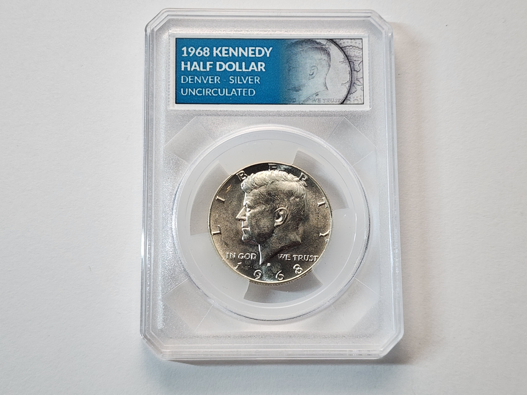 1968-D Kennedy Half Dollar 40% Silver Uncirculated Coin in Slab