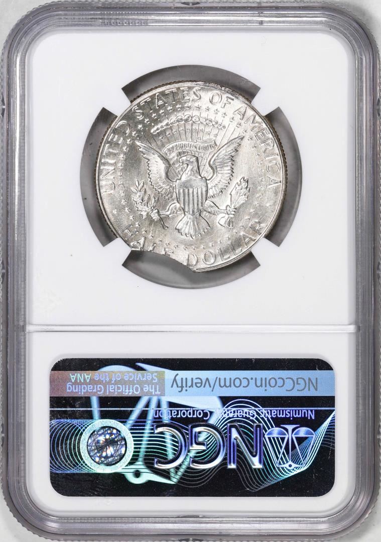 1968-D Kennedy Half Dollar Coin Mint Error - Curved Clip @ 11:30 NGC MS65
