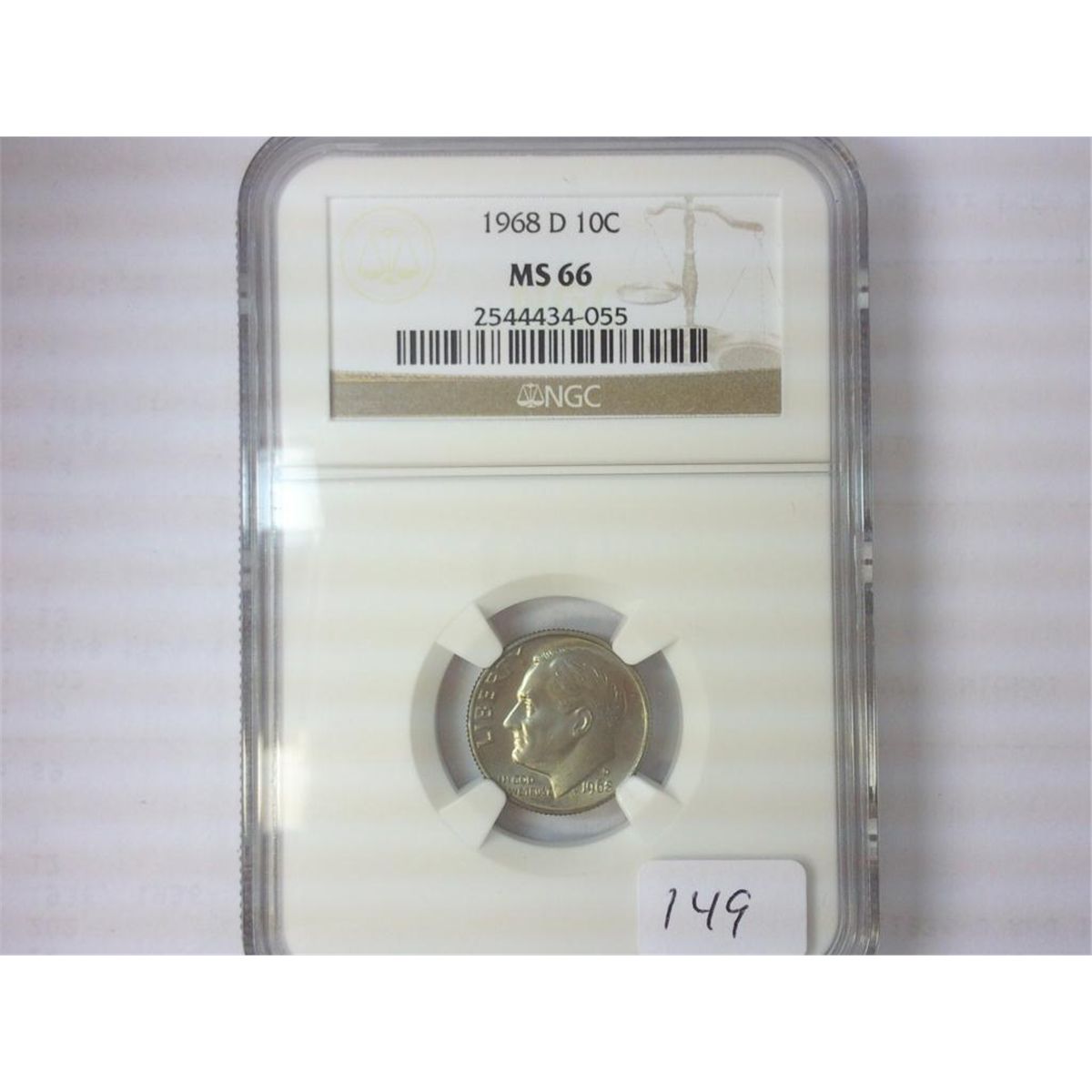 1968-D ROOSEVELT DIME NGC MS66