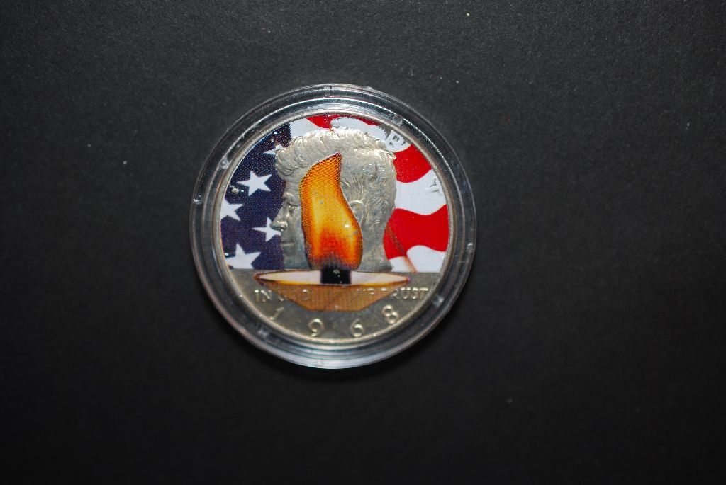 1968-D US Kennedy Half Dollar Colorized On Obv. & Rev. In Display Box; EST. $15-20