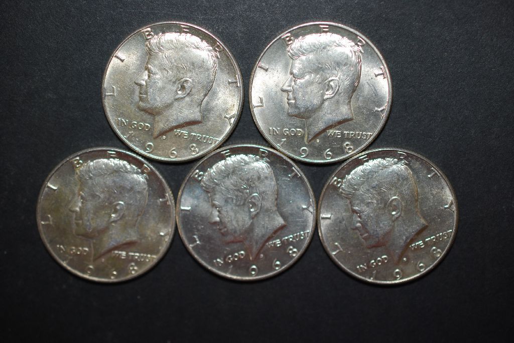 1968-D US Kennedy Half Dollar; Lot of 5; EST. $40-50
