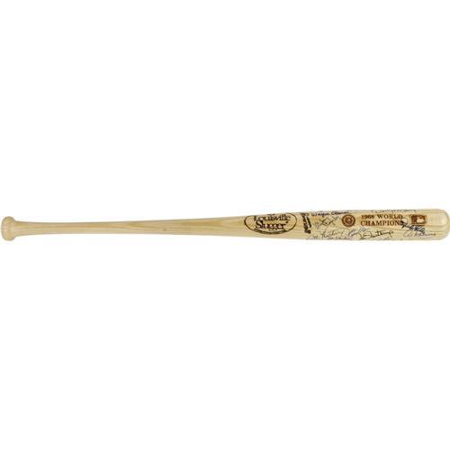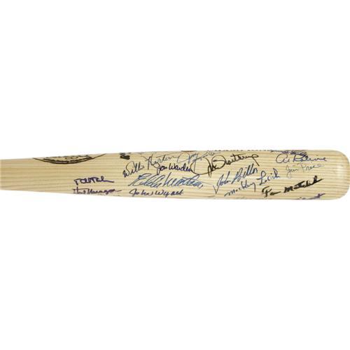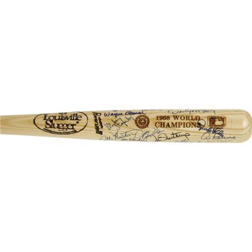 <B>1968 Detroit Tigers Team Signed Bat.</B></I> After giving up just a single run in eighteen innings of World Series action, Bob Gibson was finally shown to be human in the seventh inning of Game Seven, giving up a two-run triple to Jim Northrup that would prove to be the game winner for the Tigers. This hero of the Motor City appears on this special Louisville Slugger bearing the autographs of thirty members of the World Championship Tigers. Also here are Cy Young winner McLain, Series MVP Lolich, Kaline, Mathews, Sain, Horton, Brown, Stanley, McAuliffe, Wert and many more. All are signed in the boldest of sharpie, with a minor amount of smearing to Brown and McAuliffe, likely suffered at the signing. Otherwise the bat is essentially unimprovable. The first World Championship for Detroit since Hank Greenberg's 1945 team. <I>LOA from PSA/DNA.</B></I>