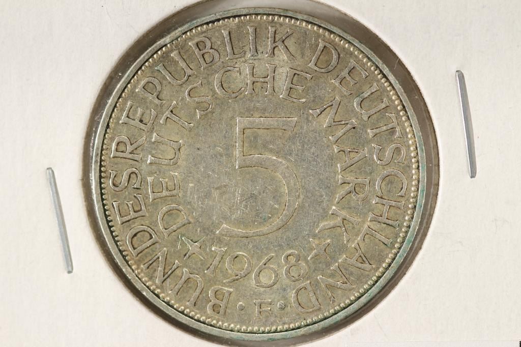 1968-F GERMAN SILVER 5 MARKS .2250 OZ. ASW