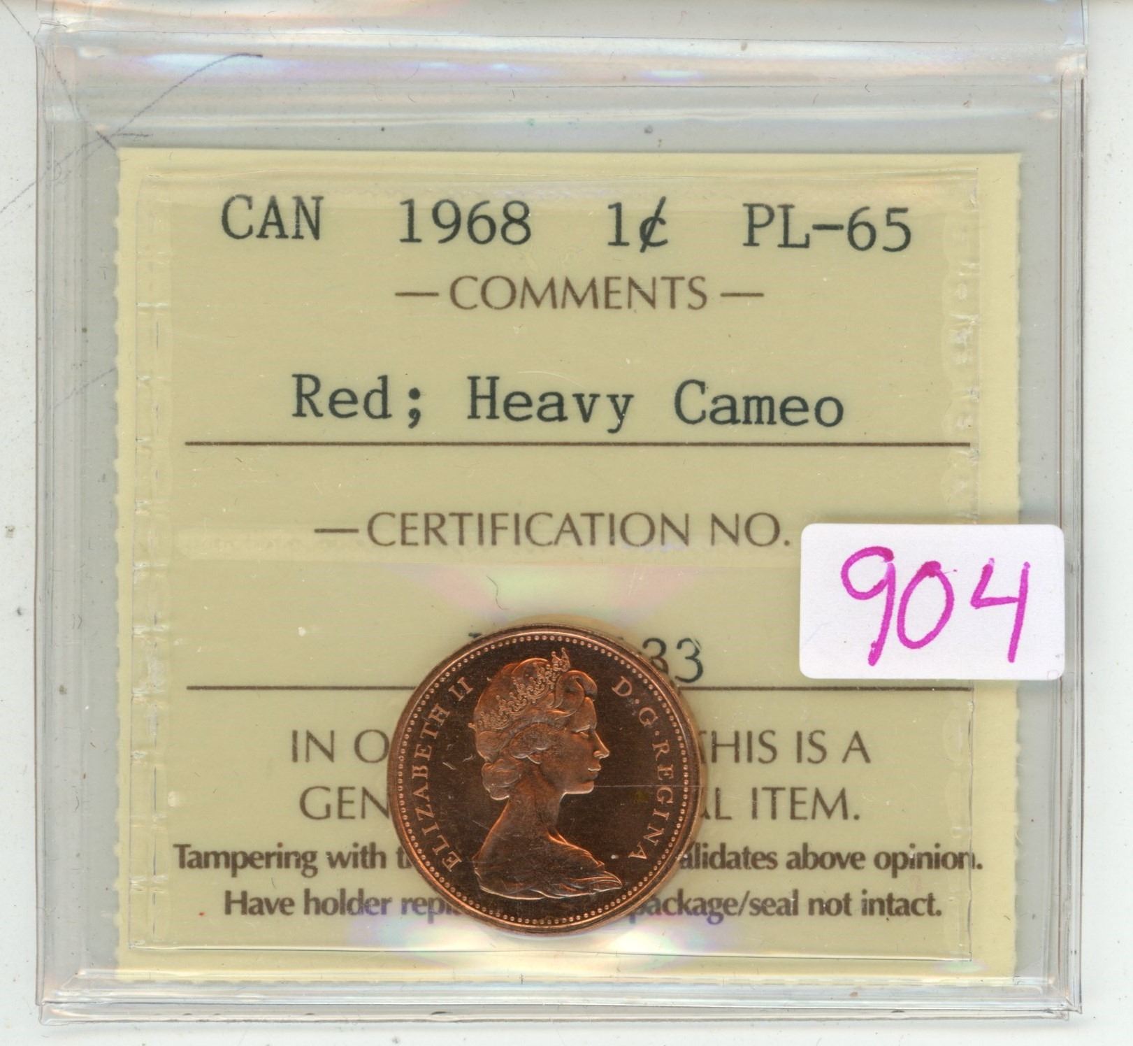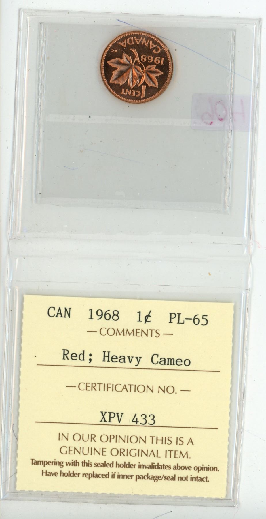 1968 ICCS graded, Canadian 1 cent penny coin - PL65