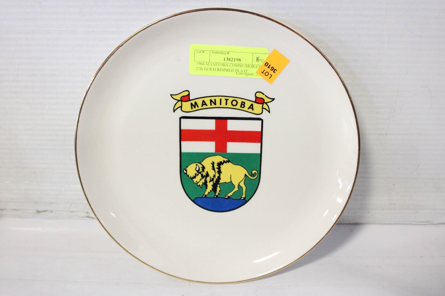 1968 MANITOBA COMMEMORATIVE 22K GOLD RIMMED PLATE
