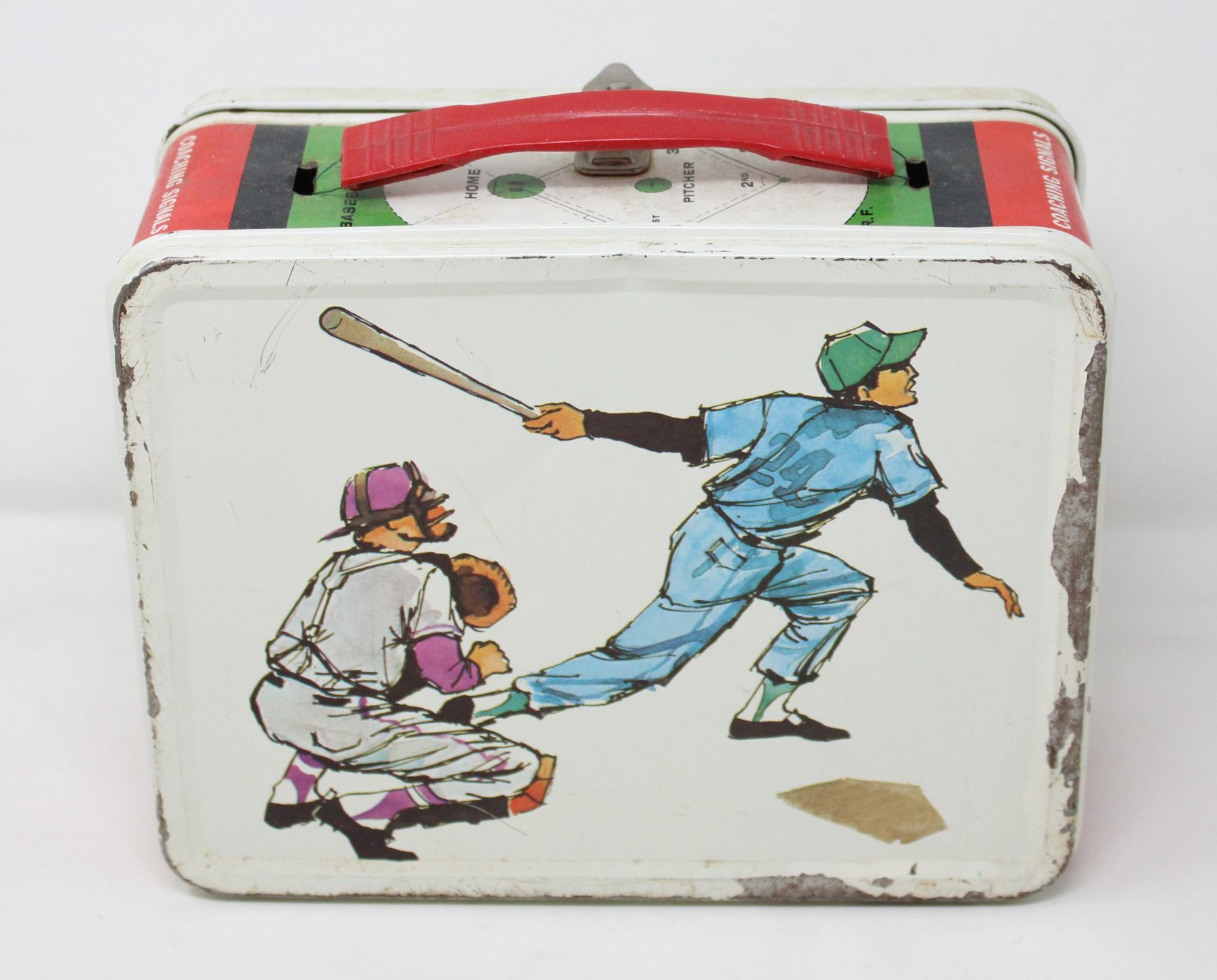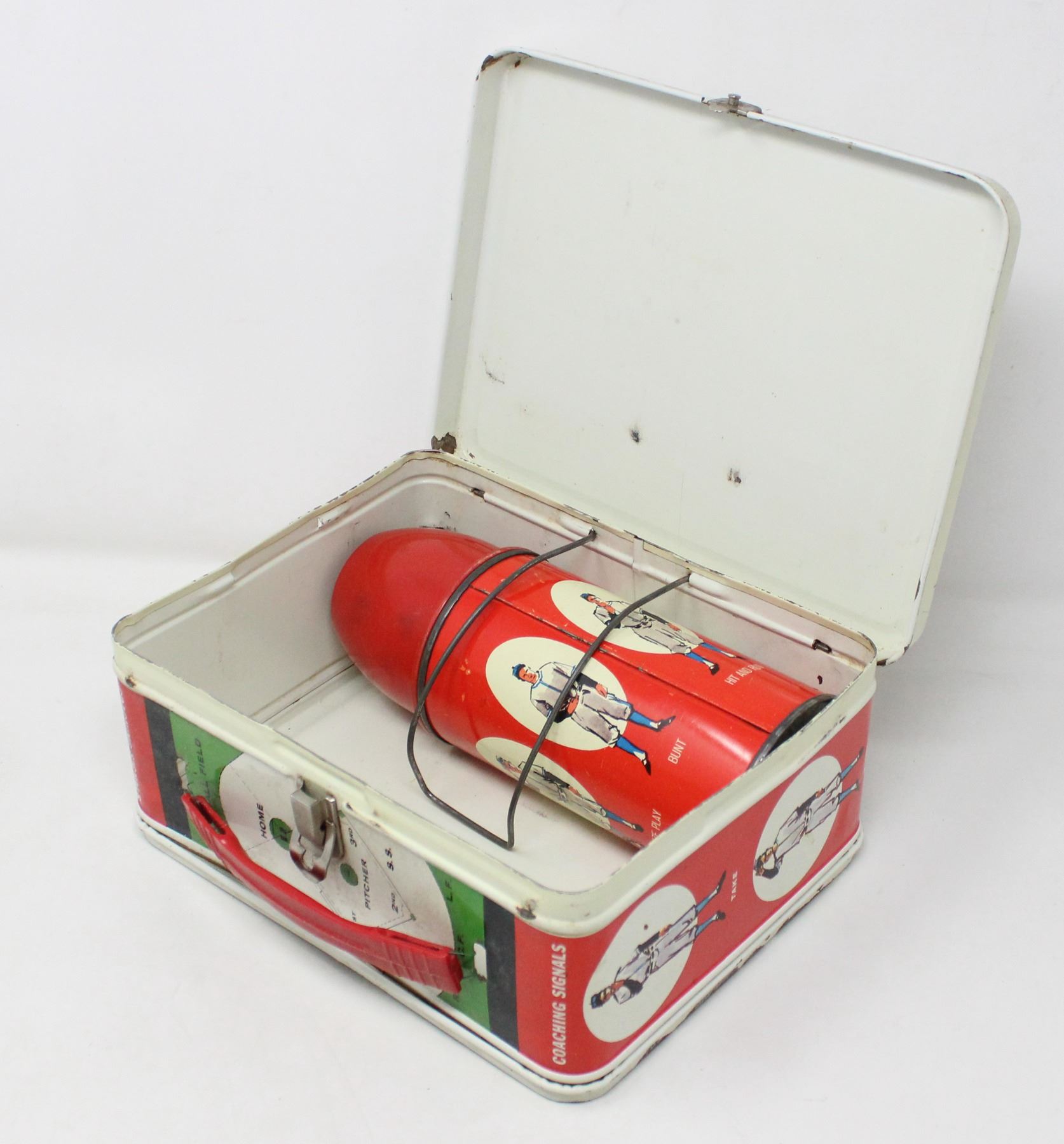1968 METAL BASEBALL LUNCH BOX WITH THERMOS
