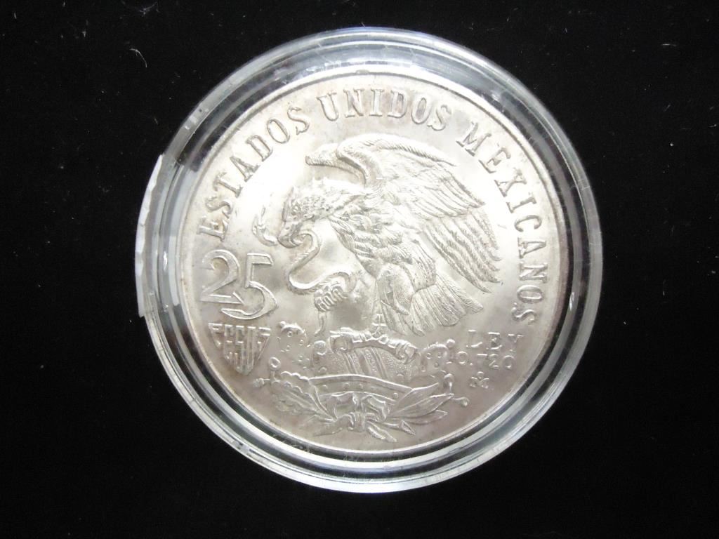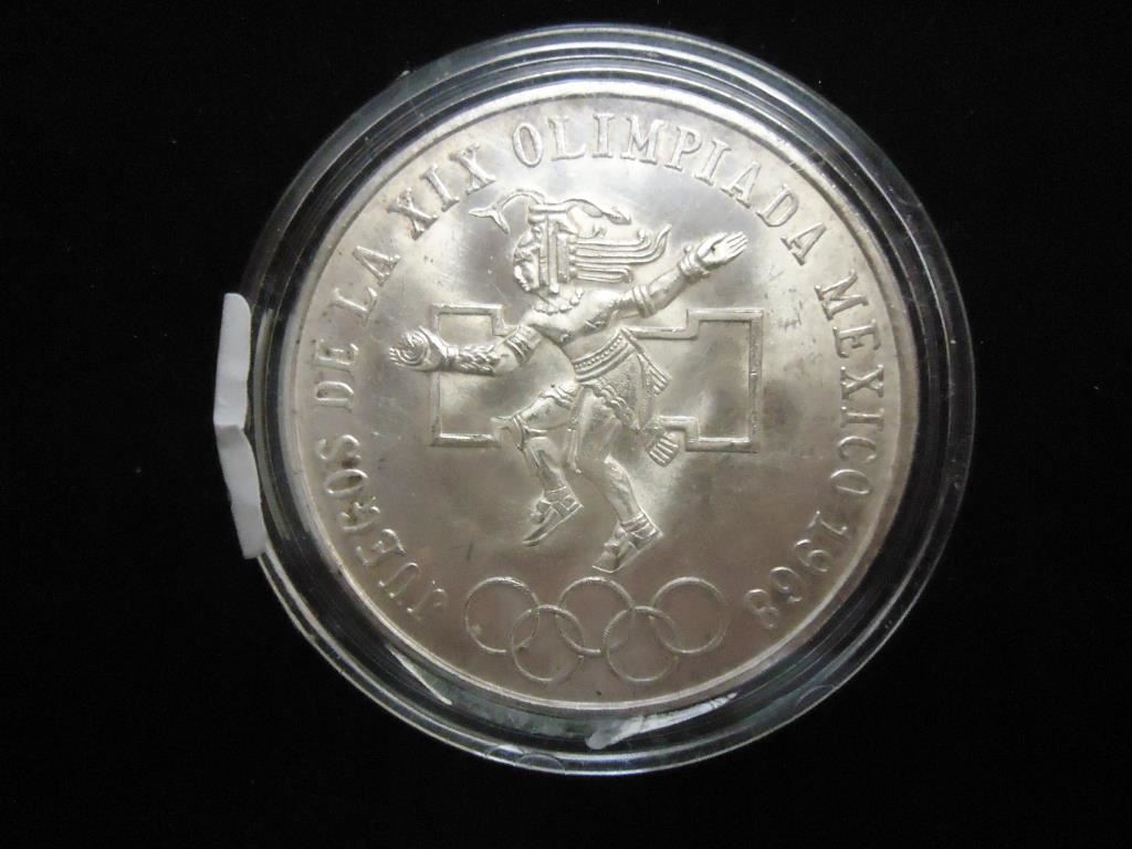 1968 MEXICO SILVER 25 PESOS OLYMPICS .5208 OZ. ASW